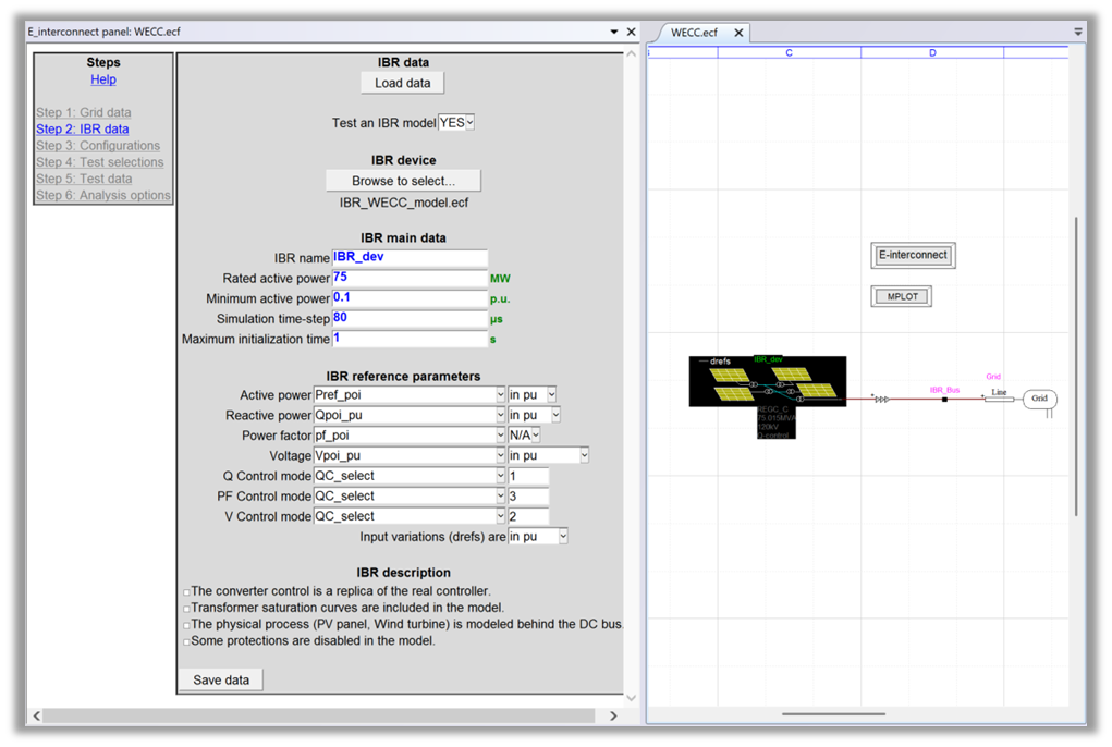 - IBR Model Setup – Select the IBR model and map its parameters to the ones expected by the tool