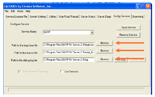 11. Click the Browse button next to the "Path to the lmgrd.exe file" item