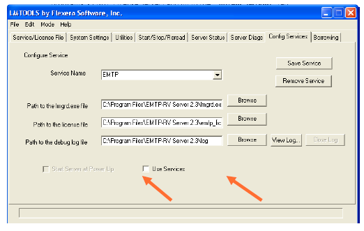 17. If you wish to have the license server start automatically when your system starts up, checkbox the “Use Services“ switch and the “Start Server at Power Up” checkbox.